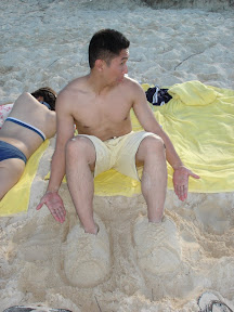 so yeah... interesting highlights of the day.... after clubbing last night i still woke up pretty early the next morning and actually did a 3 mile jog up and down the beach... by the time i went back, we decided we wanted to get surfing lessons while alice was sleeping (as you saw from pics from before)