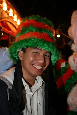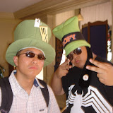 me with other weird hats around the park... this is a cheschire cat hat with goofy ears... u can find it at alice and wonderland