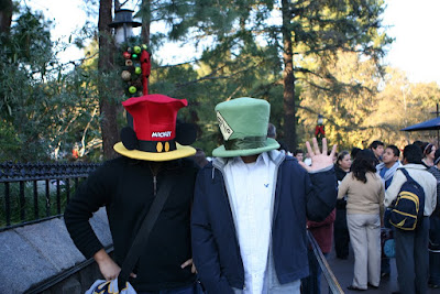 so this time coming into disneyland, i decided to carry on the tradition and wear my same funny hat... along with trev getting his own funny hat...