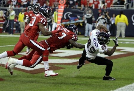 But the Texans were on a mission and they stopped the Ravens, only prolonging my torture. With the ball deep on their 10yard line, Matt Shaub on the texans was almost sacked for a safety.... i was yelling NO NO NO!!!! but then i thought... wait.... that would also make me win!!!